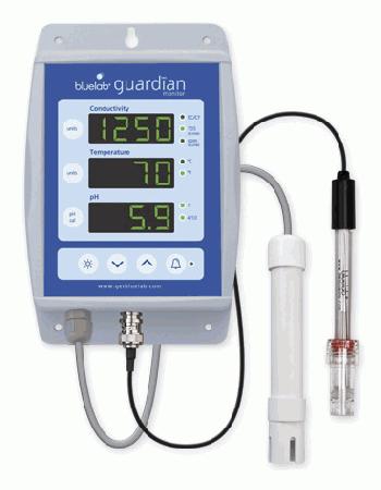Der Guardian Monitor kann an einem Balken oder einer Wand befestigt werden. Die Sensoren werden in den Nährstofftank gelegt. Der Guardian zeigt Ihnen die aktuellen Werte ihrer Nährlösung rund um die Uhr, jeden Tag im Jahr an.Sie können einen visuellen Alarm setzen, wenn die Werte sich außerhalb eines nach oben und unten