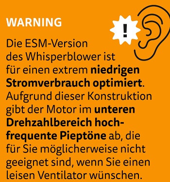 Diese ESM Version (Beepsblower) gibt im untersten Drehzahlbereich ein hochfrequentes Piepen von sich.