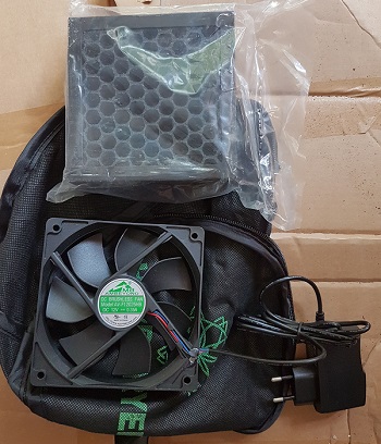 Der Ventilator ist Steckerfertig und saugt die feuchte Luft aus dem Trockennetz.